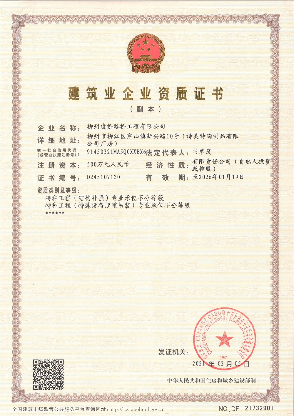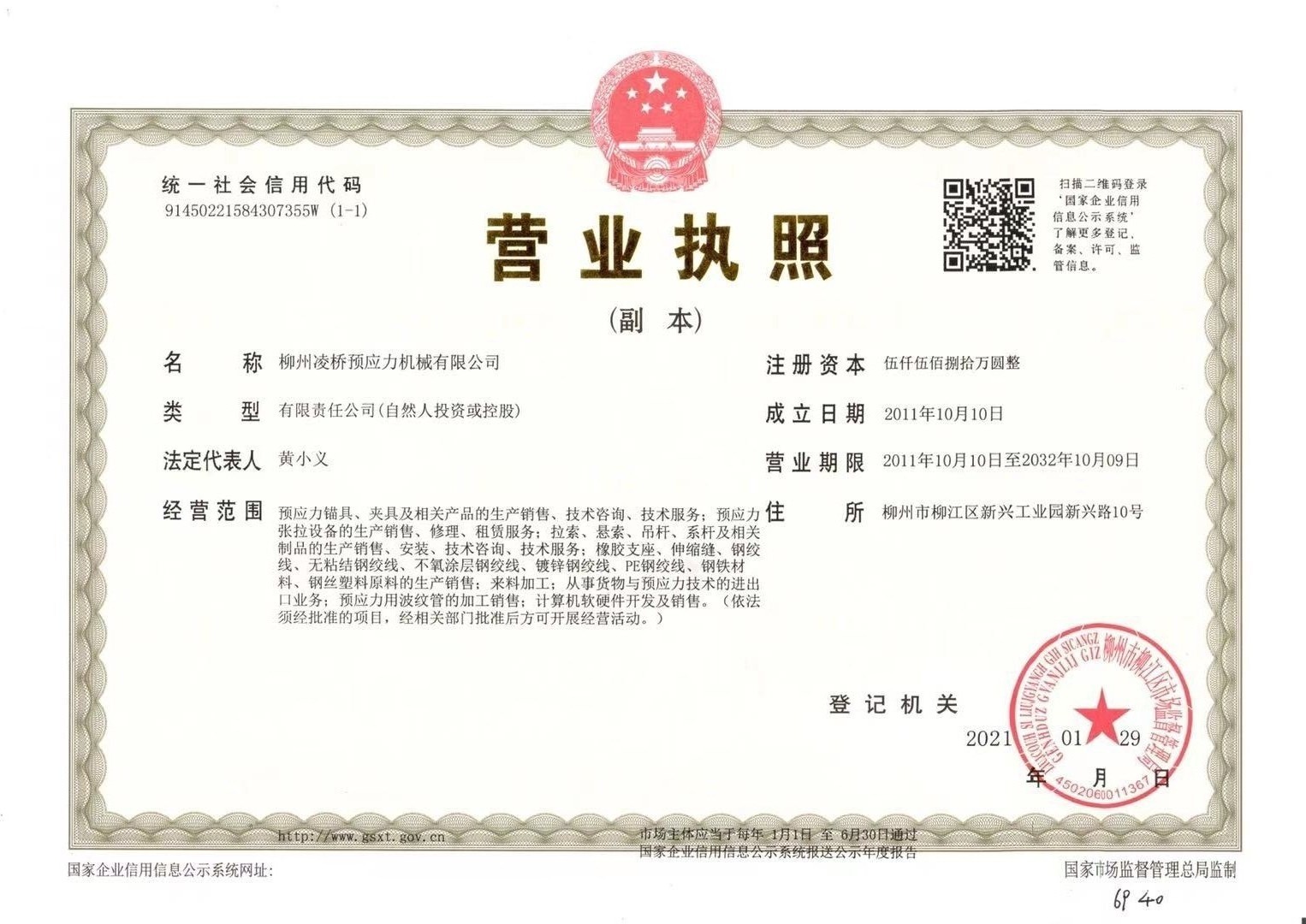 柳州凌桥预应力机械有限公司成立于2011年,公司占地面积8000平方米,拥有4000平方米的制造车间。是集预应力锚具、机具及配套产品生产、工程安装、施工和科研开发为一体的专业企业,其产品广泛用于路桥、市政、高层建筑、电站建设、岩土锚固、深基坑支护等各种预应力混泥土工程。 公司总结的生产经验及用户使用信息反馈,新研发的预应力智能张拉系统和智能压浆系统在国内广泛使用并得到行业的普遍好评,并吸取全国同行业生产各系列锚固体系的技术精华,推出了柳州凌桥锚固体系,具有安装使用方便、质量稳定,锚固效率系数高、安全可靠等优点。我们的每年锚具生产能力为900万件,预应力紧张器为2500万件。配套张拉机具500套、缆索6000吨。产品经国家建筑工程质量监督检验中心等检测机构的性能检测,其锚固性能技术指标均满足国家标准GB/T14370《预应力筋用锚具、夹具和连接器》和交通部标准JT/T329《公路桥梁预应力钢绞线用锚具、夹具和连接器》国际预应力协会(FIP)《后张预应力体系的验收和应用建议》的各项要求,机具性能符合建筑行业标准JG/T321《预应力用液压千斤顶》及JG/T319《预应力用电动油泵》各项要求。拉索产品性能符合FIP-93《斜拉索设计试验与安装条例》、GB/T18365-2001《斜拉桥热挤聚乙烯高强钢丝拉索技术条件》的要求。产品经大量国内重点工程及国外工程使用反馈,其性能稳定、可靠、安全,深得广大用户及监理单位的好评......